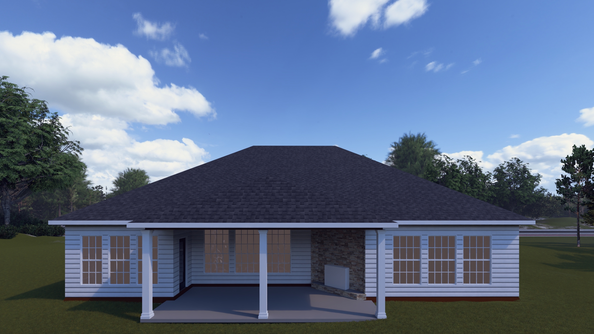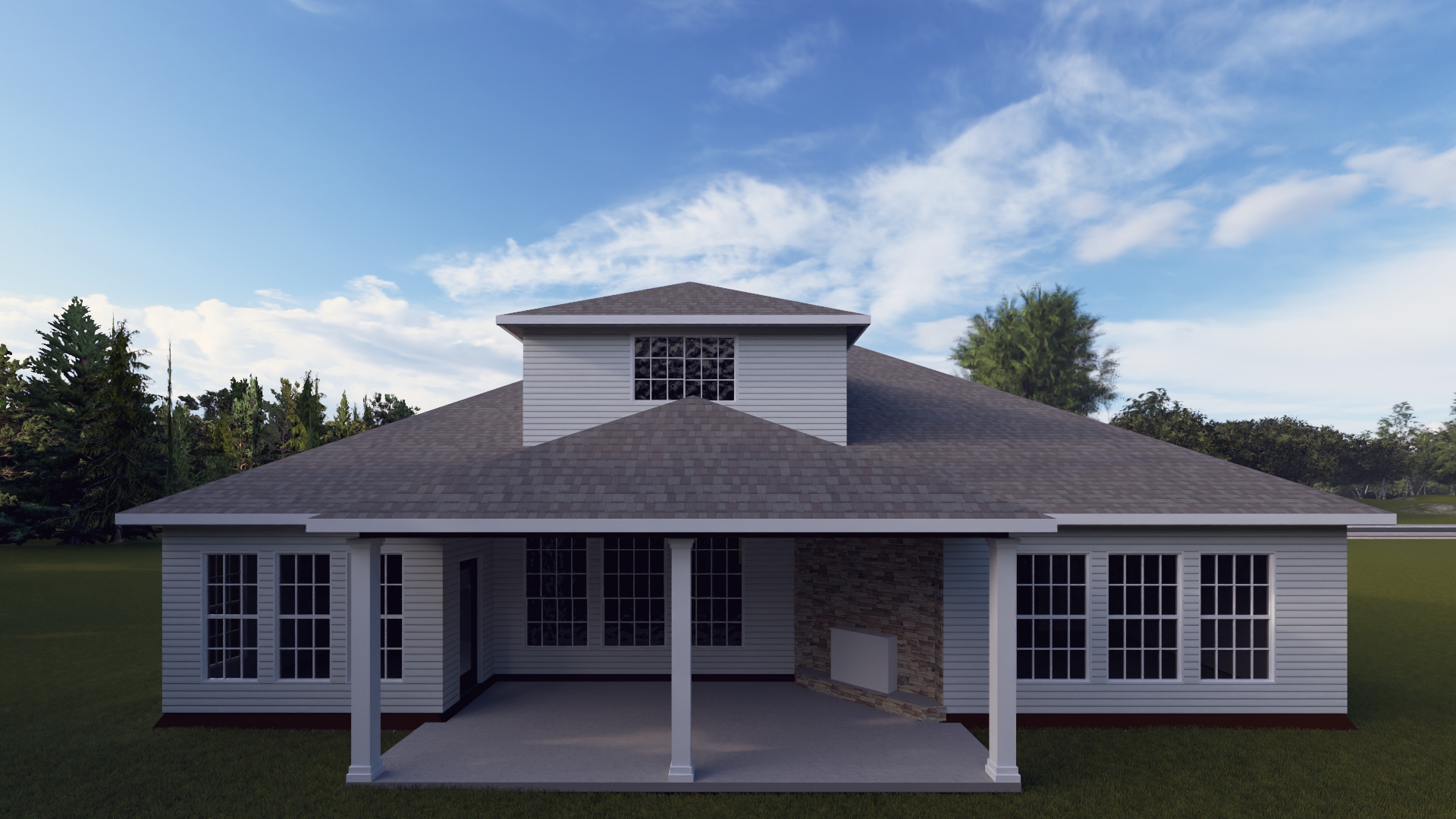 The Atkinson is a spacious ranch plan with three bedrooms, and a fourth one optional in the office/den location. A bonus room option adds a guest bedroom, loft, and full bath. The main living areas, including a flex area, share an open layout with 10' ceilings. The kitchen has an island with counter dining, spacious pantry, and breakfast area with multiple windows. A hallway with coat closet and optional drop zone, plus powder room, connects the kitchen to the garage. The family room overlooks a large covered patio with optional direct vent fireplace. Options for built-in bookcases and a fireplace enhance the family room. The primary bedroom is located off a semi-private hall and has a trey ceiling and triple window. A luxury bath with separate vanities, a separate shower and garden tub, linen closet, and an oversized walk in closet complete the suite. Bedrooms two and three share a hall bath, and there is a spacious utility room with folding counter. Exterior details include a covered front porch, dormers, separate garage doors, and hip roof.