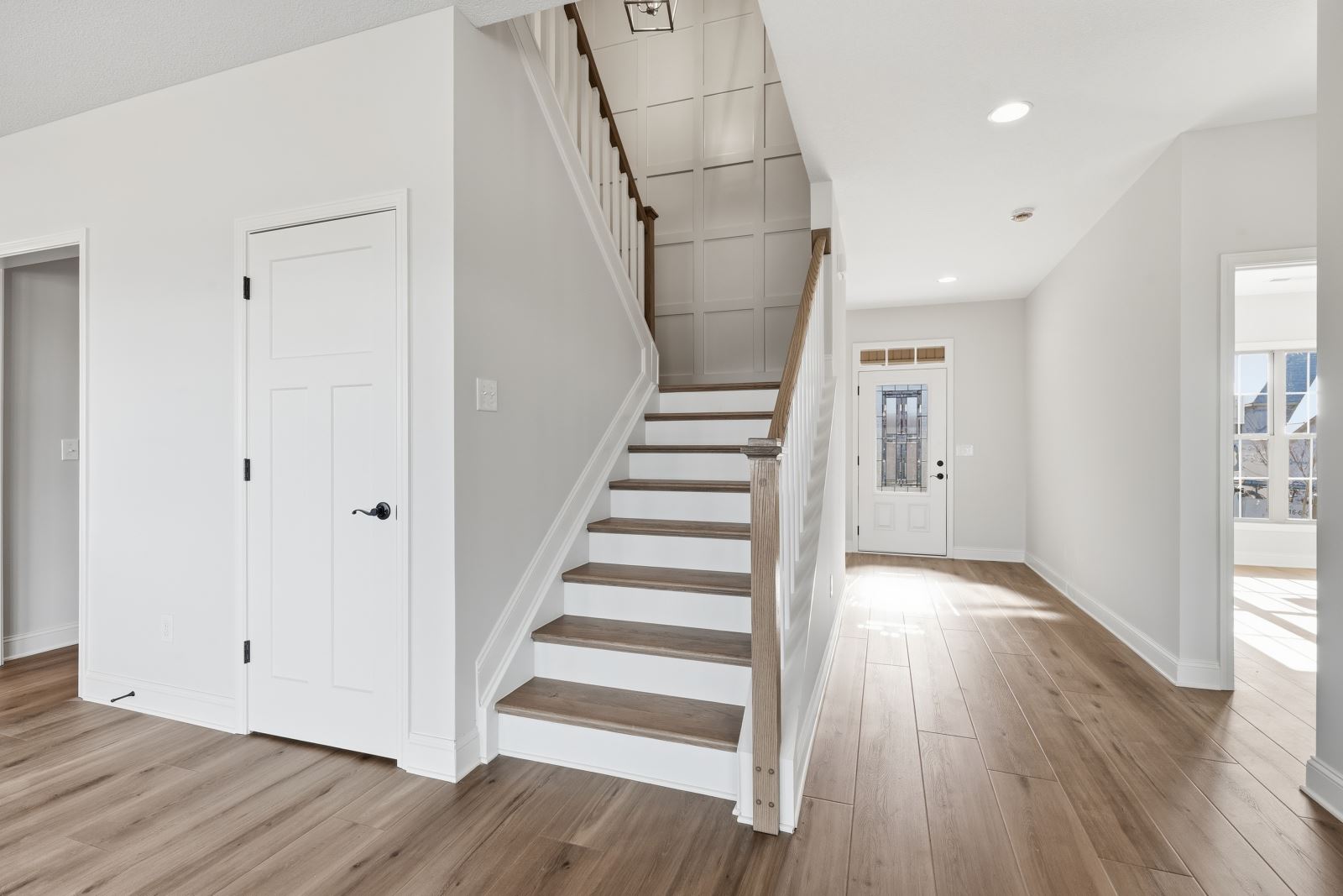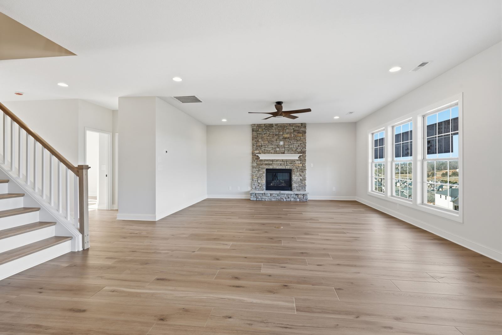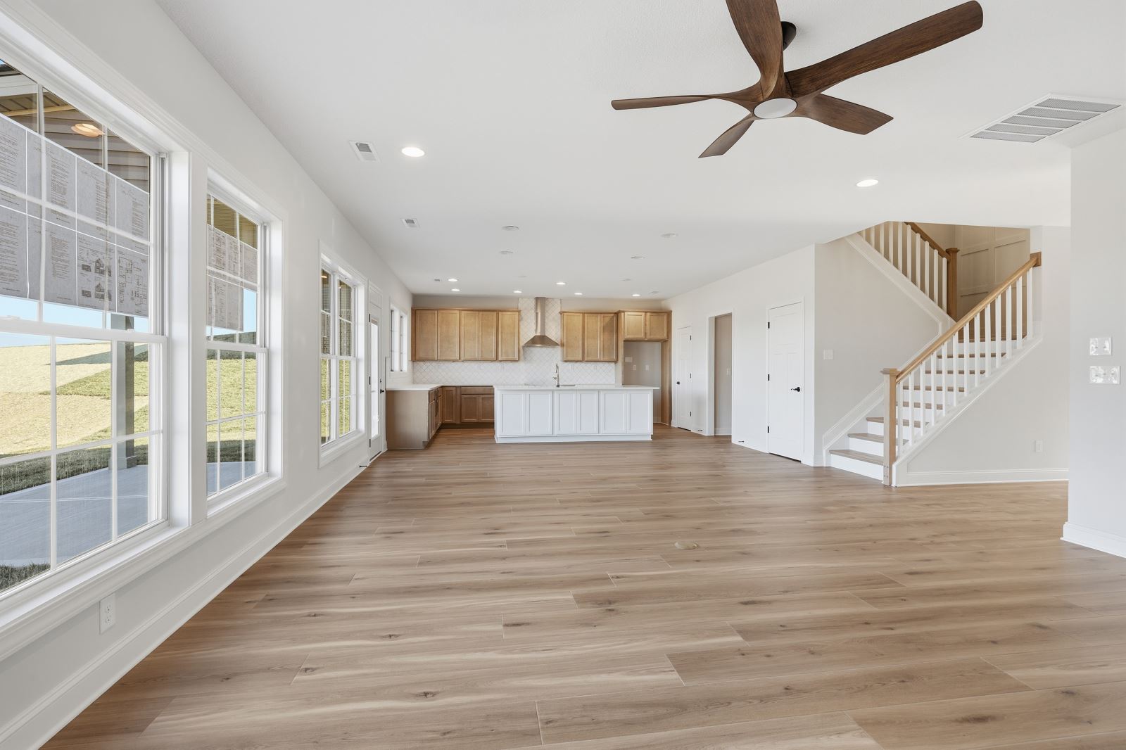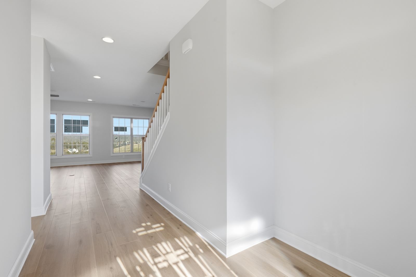 The Barnett offers a family-friendly first floor layout with a large family room opening to a spacious kitchen and breakfast area with island and walk-in pantry. A mudroom with optional drop zone and separate utility room with folding counter connects the garage to the kitchen. A flex area off the entry can be utilized as a formal sitting area, home office, or optional guest bedroom with full bath. The first floor includes a coat closet and powder room, conveniently located off the entry hall. Upstairs are the primary suite and three bedrooms, or two bedrooms and a large loft. The primary suite includes a spacious bath with double bowl vanities, separate shower, garden tub, and large walk-in closet. Upstairs bedrooms share a bath accessed by a semi-private hall.