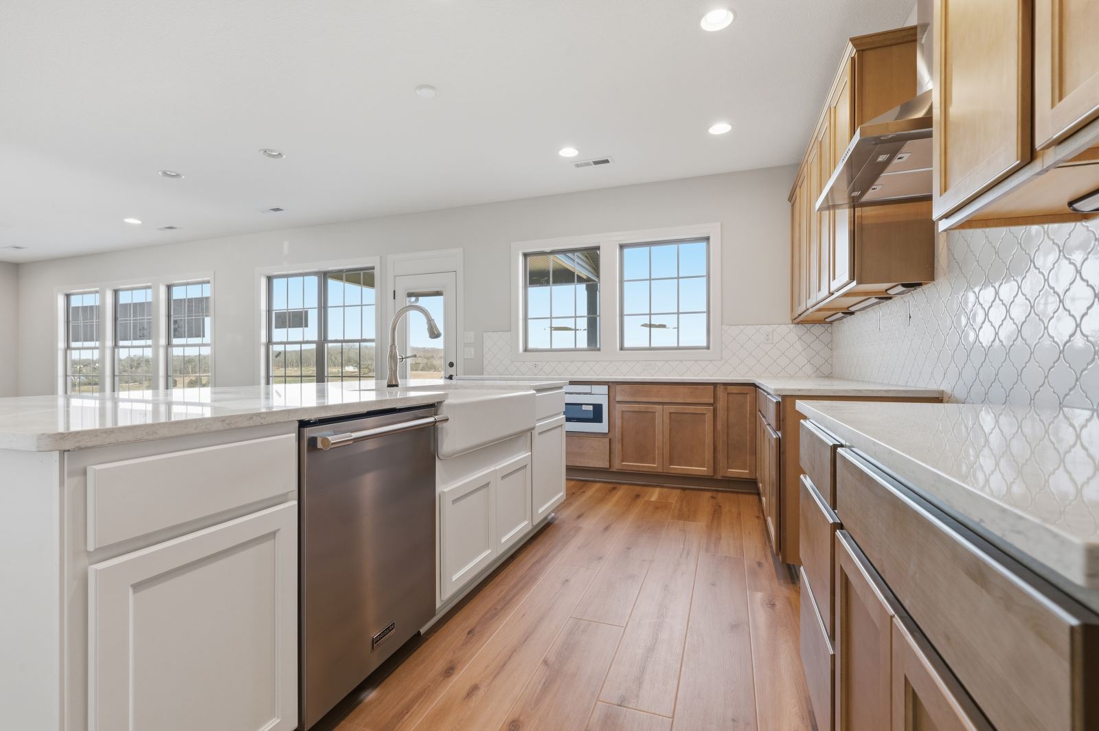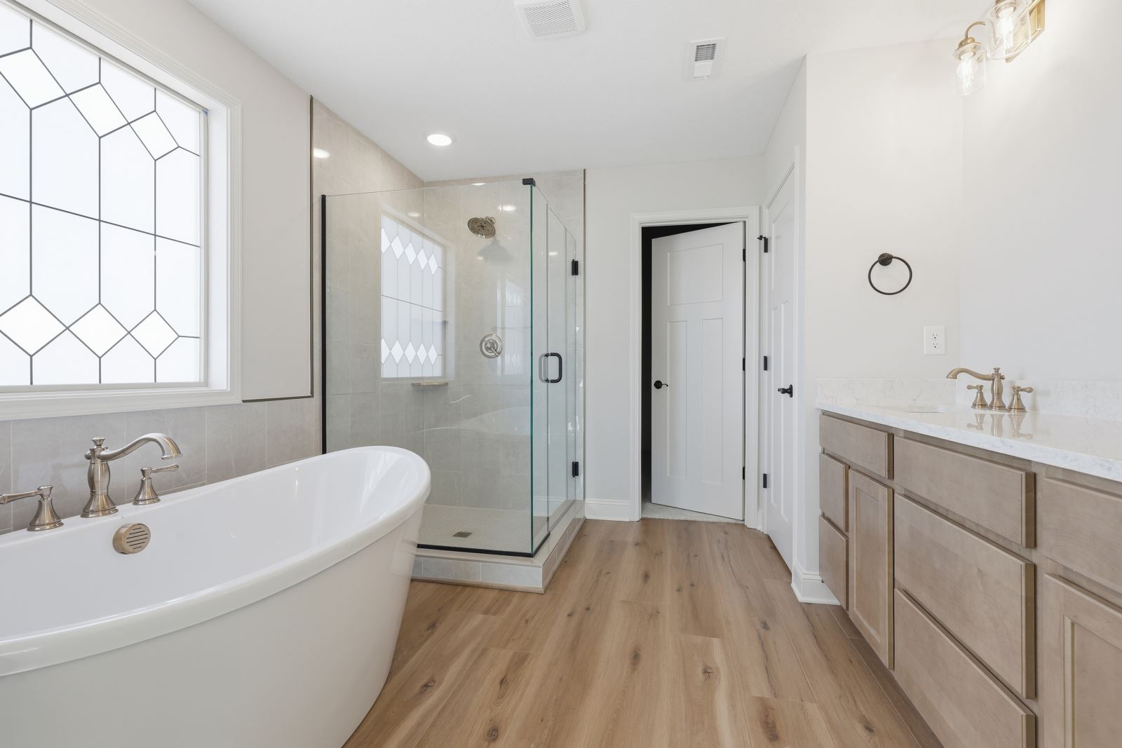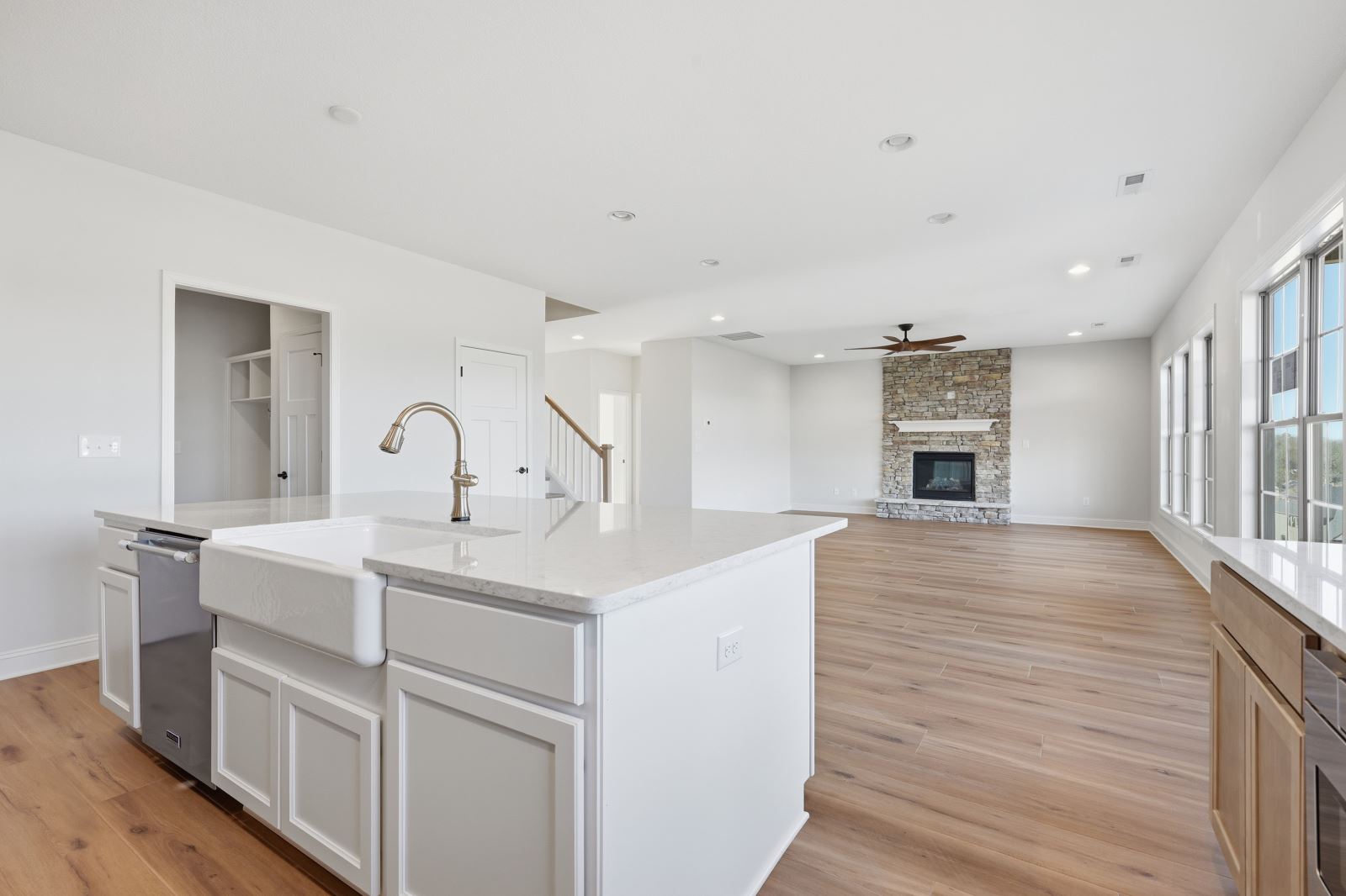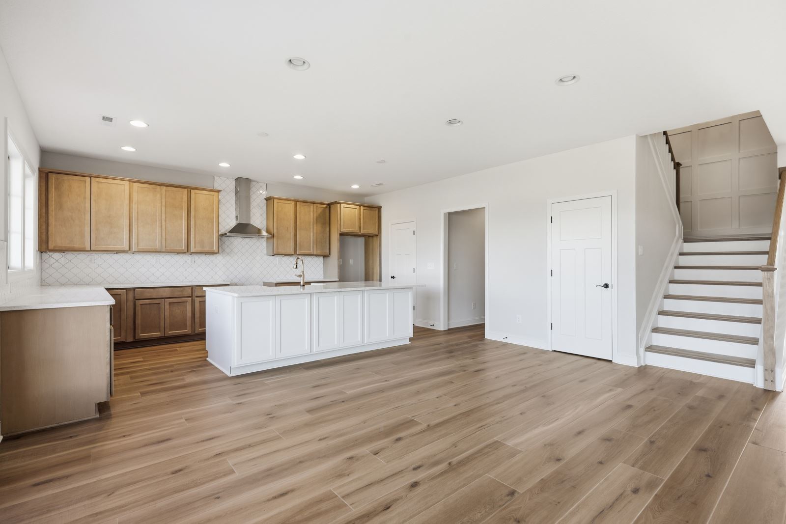 The Barnett offers a family-friendly first floor layout with a large family room opening to a spacious kitchen and breakfast area with island and walk-in pantry. A mudroom with optional drop zone and separate utility room with folding counter connects the garage to the kitchen. A flex area off the entry can be utilized as a formal sitting area, home office, or optional guest bedroom with full bath. The first floor includes a coat closet and powder room, conveniently located off the entry hall. Upstairs are the primary suite and three bedrooms, or two bedrooms and a large loft. The primary suite includes a spacious bath with double bowl vanities, separate shower, garden tub, and large walk-in closet. Upstairs bedrooms share a bath accessed by a semi-private hall.