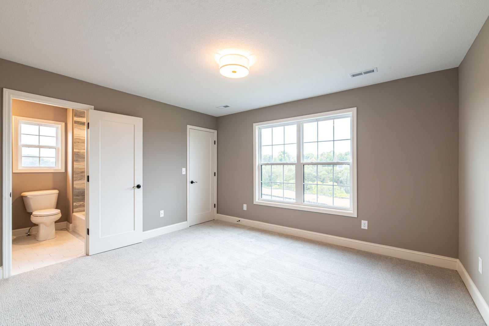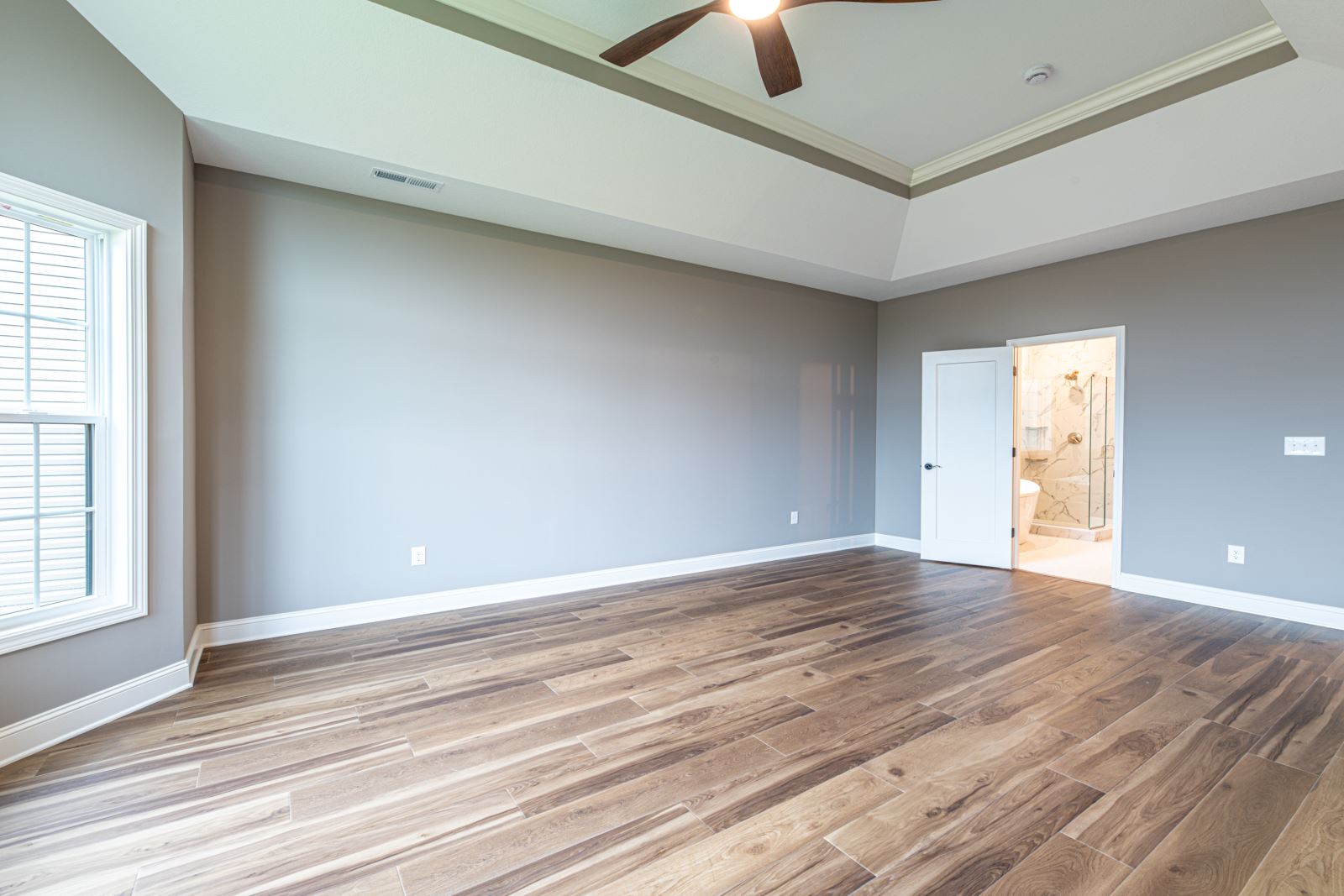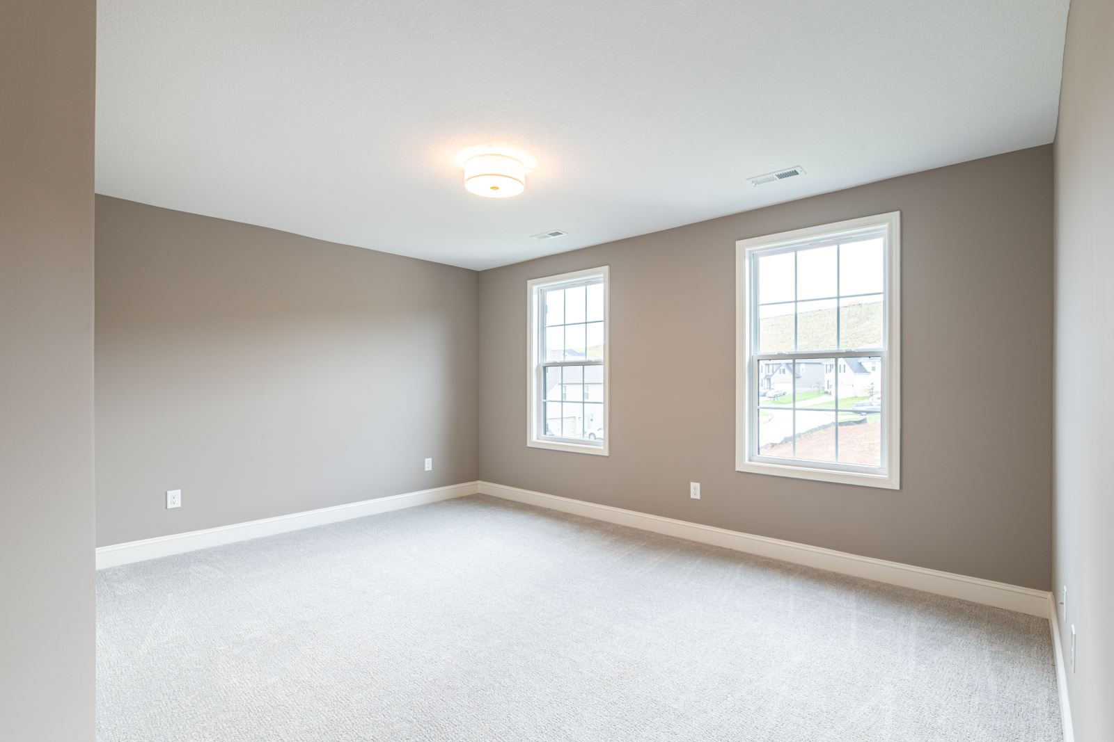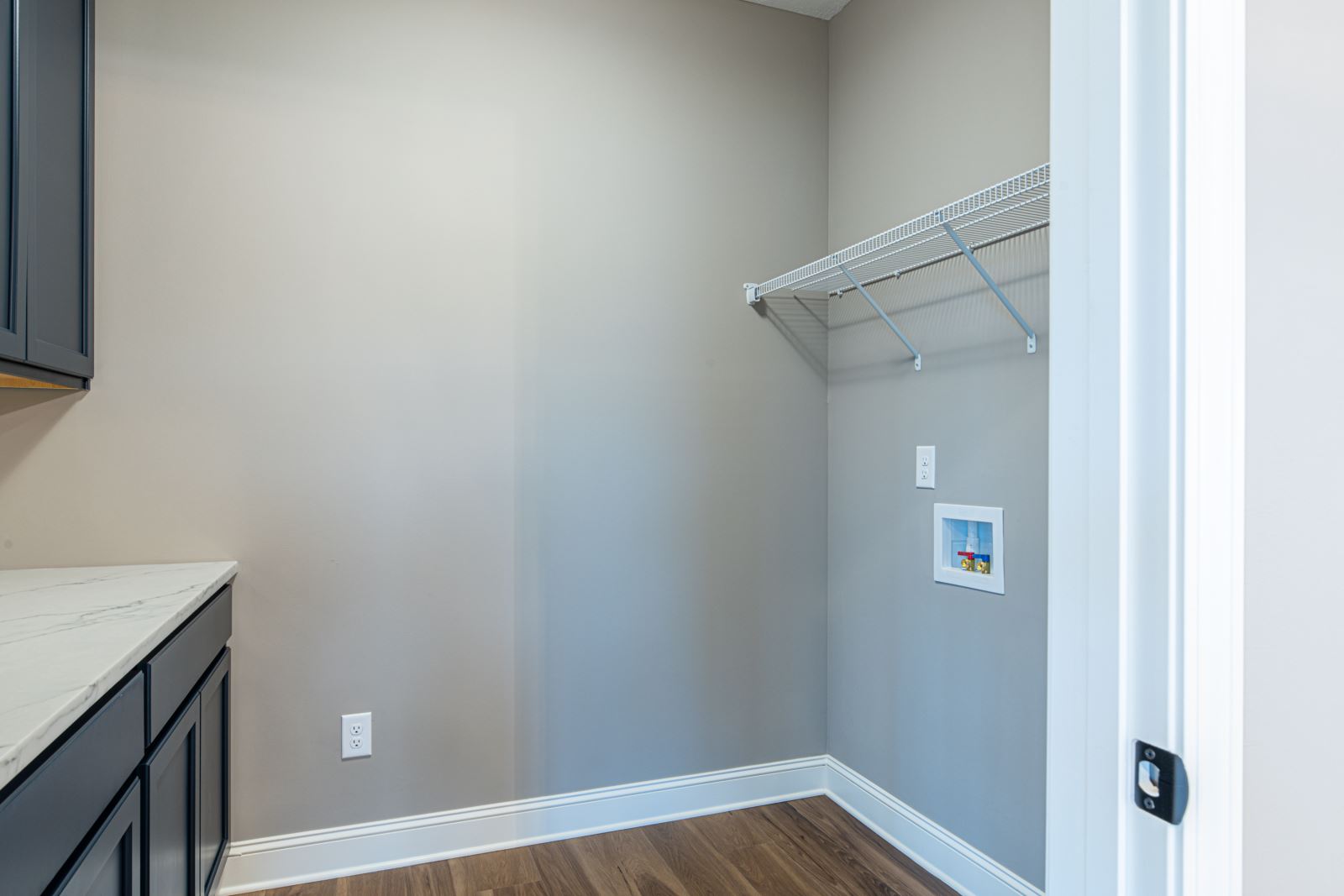 The Bridgeport offers a luxurious first floor primary bedroom suite, open living areas, and three bedrooms and two baths plus loft on the second floor. Main floor living areas include a flex room open to the entry, and a large two story family room opening to the kitchen and breakfast area. The kitchen features an island design, a large walk-in pantry, and easy access to the mudroom with optional drop zone, as well as the separate utility room with built in folding counter. The primary bedroom suite has a trey ceiling with 11' ceiling height, a beautiful bay window with palladian window that can form a sitting nook, and a luxury bath with garden tub, separate shower, 7' double bowl vanity, and two defined closet spaces. Upstairs, three bedrooms and two full bath share access to a loft. Exterior details include a covered front porch, hip roof, and distinctive elongated windows on the first floor.
