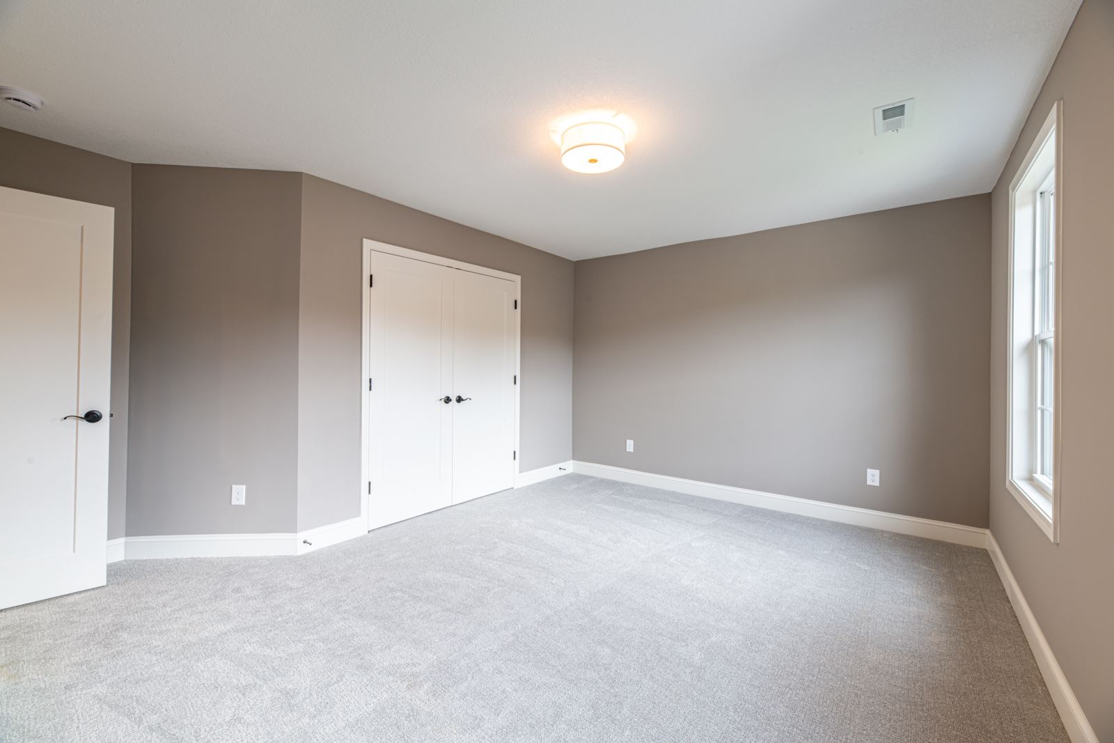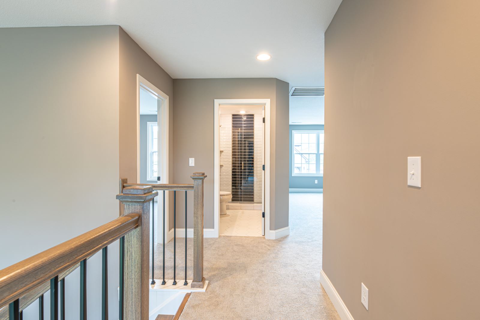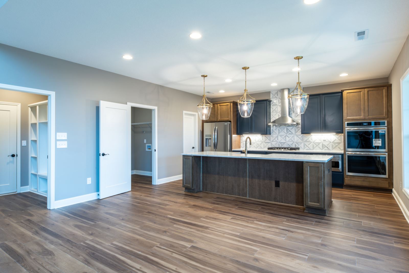 The Bridgeport offers a luxurious first floor primary bedroom suite, open living areas, and three bedrooms and two baths plus loft on the second floor. Main floor living areas include a flex room open to the entry, and a large two story family room opening to the kitchen and breakfast area. The kitchen features an island design, a large walk-in pantry, and easy access to the mudroom with optional drop zone, as well as the separate utility room with built in folding counter. The primary bedroom suite has a trey ceiling with 11' ceiling height, a beautiful bay window with palladian window that can form a sitting nook, and a luxury bath with garden tub, separate shower, 7' double bowl vanity, and two defined closet spaces. Upstairs, three bedrooms and two full bath share access to a loft. Exterior details include a covered front porch, hip roof, and distinctive elongated windows on the first floor.