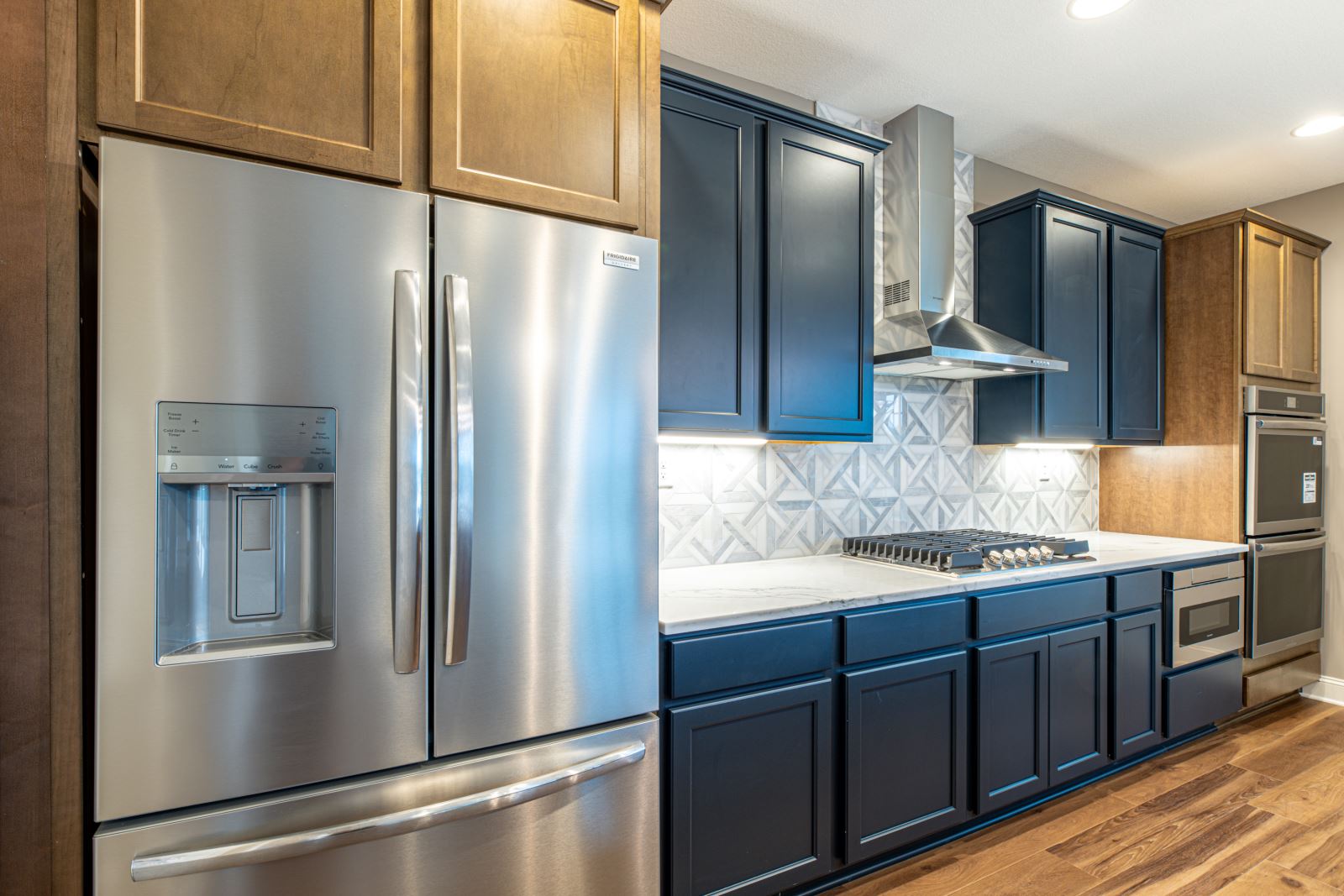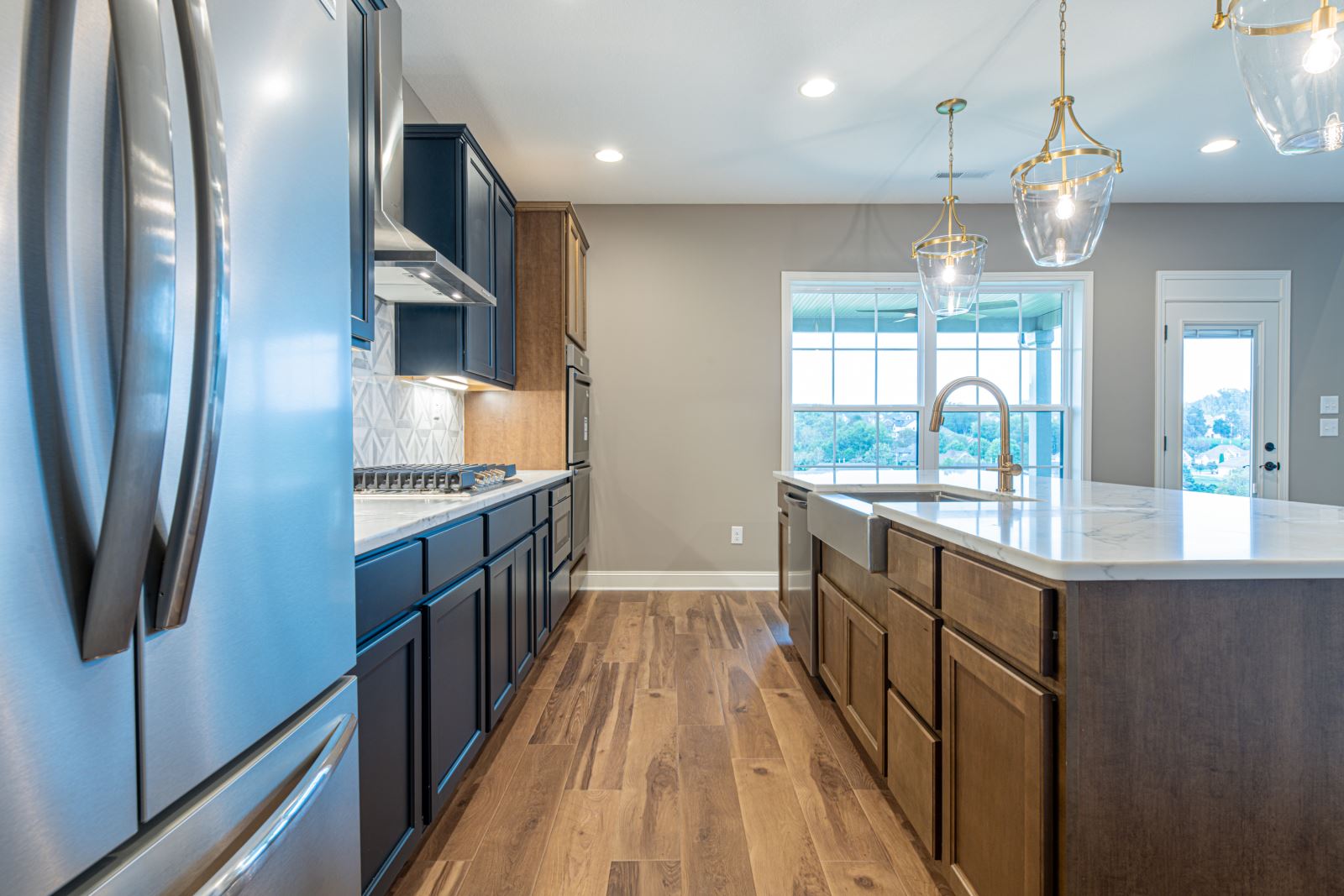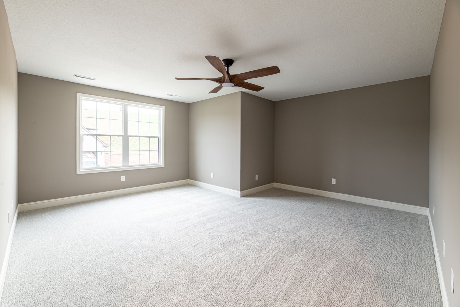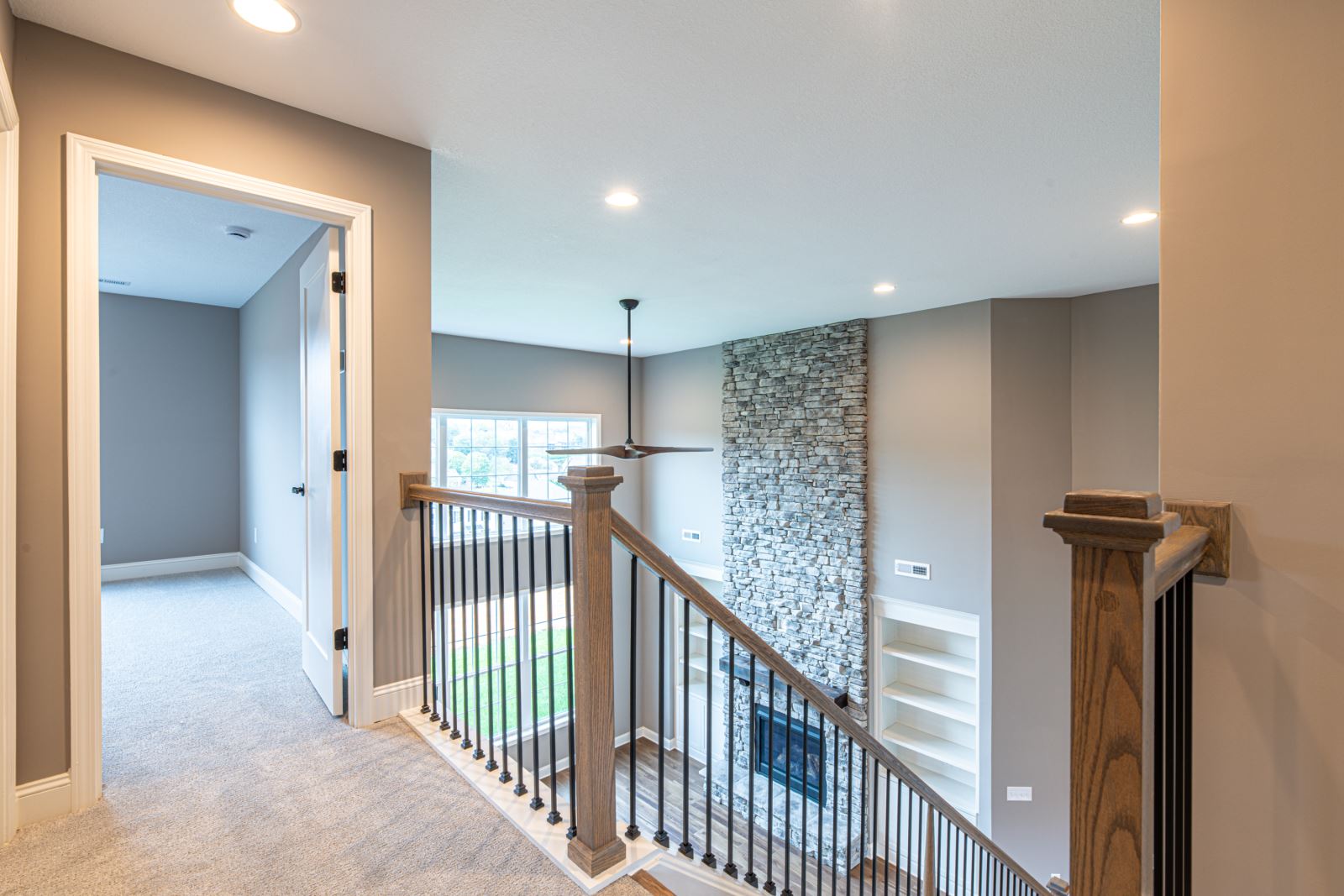 The Bridgeport offers a luxurious first floor primary bedroom suite, open living areas, and three bedrooms and two baths plus loft on the second floor. Main floor living areas include a flex room open to the entry, and a large two story family room opening to the kitchen and breakfast area. The kitchen features an island design, a large walk-in pantry, and easy access to the mudroom with optional drop zone, as well as the separate utility room with built in folding counter. The primary bedroom suite has a trey ceiling with 11' ceiling height, a beautiful bay window with palladian window that can form a sitting nook, and a luxury bath with garden tub, separate shower, 7' double bowl vanity, and two defined closet spaces. Upstairs, three bedrooms and two full bath share access to a loft. Exterior details include a covered front porch, hip roof, and distinctive elongated windows on the first floor.