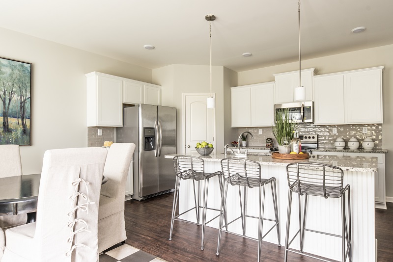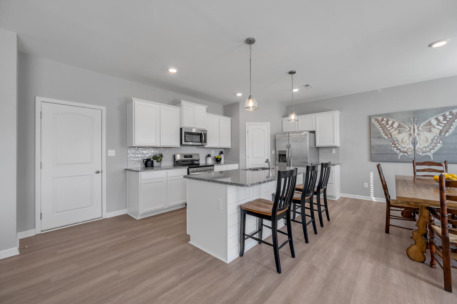 The Laurel Square, part of the Trend Collection by Ball Homes, is two story plan with a very open first floor layout. The island kitchen offers both a breakfast area and countertop dining, and a large pantry. The kitchen opens to the family room at the rear of the home. Upstairs are the primary bedroom suite, two bedrooms and a hall bath, plus a spacious loft. A fourth bedroom option is available in lieu of the loft. The primary bedroom suite includes a bedroom with vaulted ceiling, large closet, and spacious bath with tub/shower, window, and linen storage. An upgrade bath offers a garden tub, separate shower, and picture window.