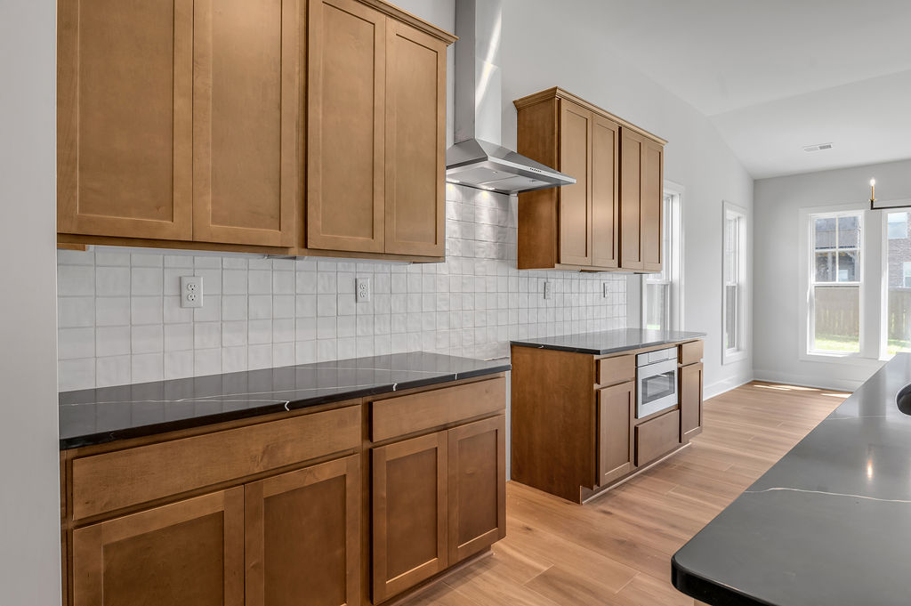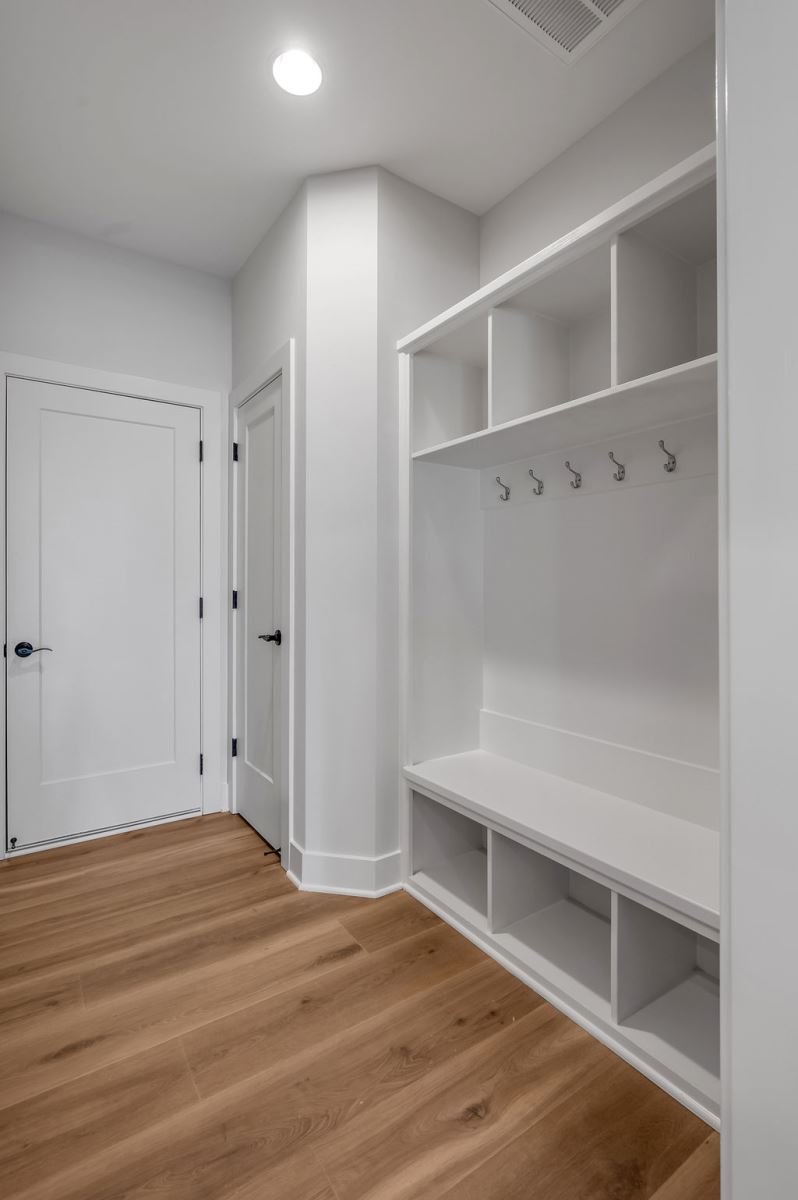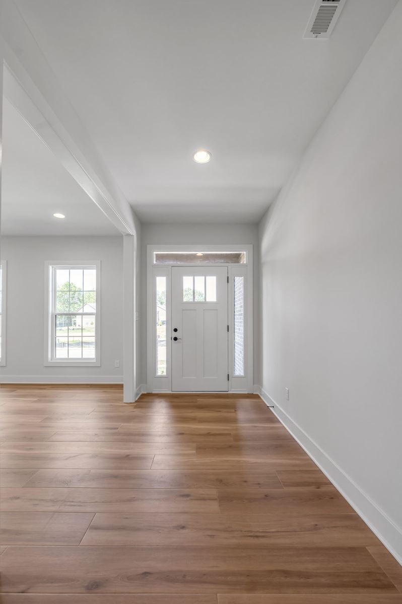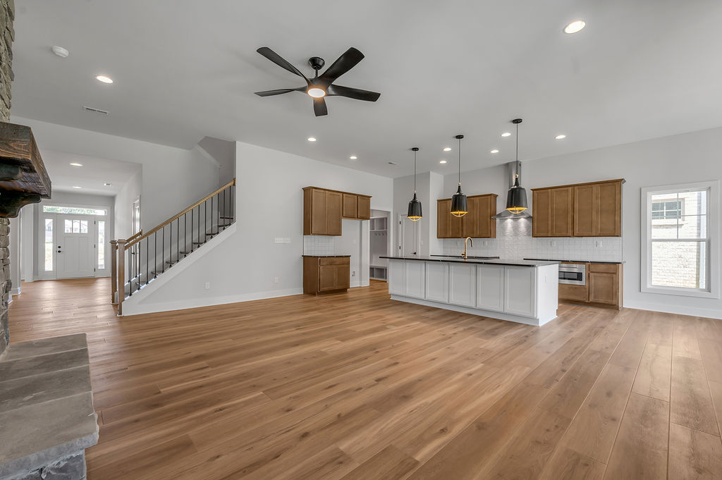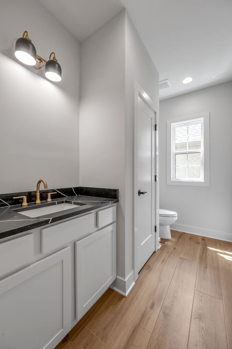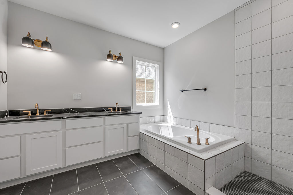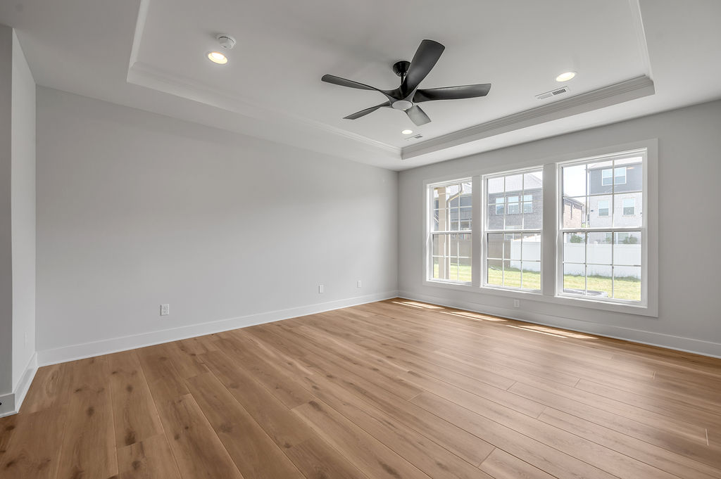 The Newcomb II is a traditional two-story home with a first floor primary bedroom plus three bedrooms, a loft, full bath, and unfinished storage area on the second floor. An additional full bath option is offered on the second floor. A large flex area off the entry can serve as an office or formal living area and can also be configured as a first-floor guest suite with full bath. A total of five bedrooms and four full baths are possible. The kitchen includes a pantry and island with counter dining, opening to the large central Family Room. A dedicated dining area off the kitchen overlooks the rear yard with a feature window and vaulted ceiling. A mudroom with optional drop zone connects the garage to the kitchen, as well as the separate utility room with built in folding counter. The first floor primary bedroom suite is a spacious retreat, with dual vanity, commode closet, walk-in closet, and garden tub and separate shower. Nine foot ceilings are standard on the first floor with ceilings over 10' in the kitchen and family room, and a vaulted dining area. Exterior details include a hip roof and rear covered patio with optional 6’ extension.