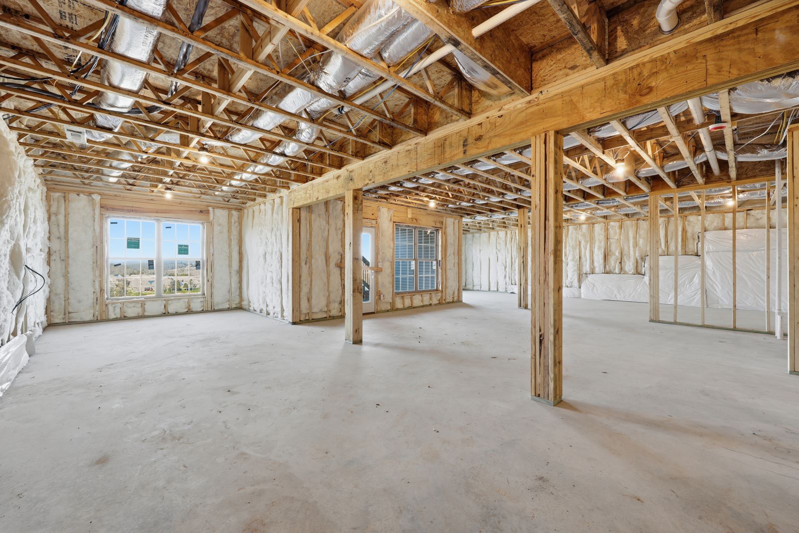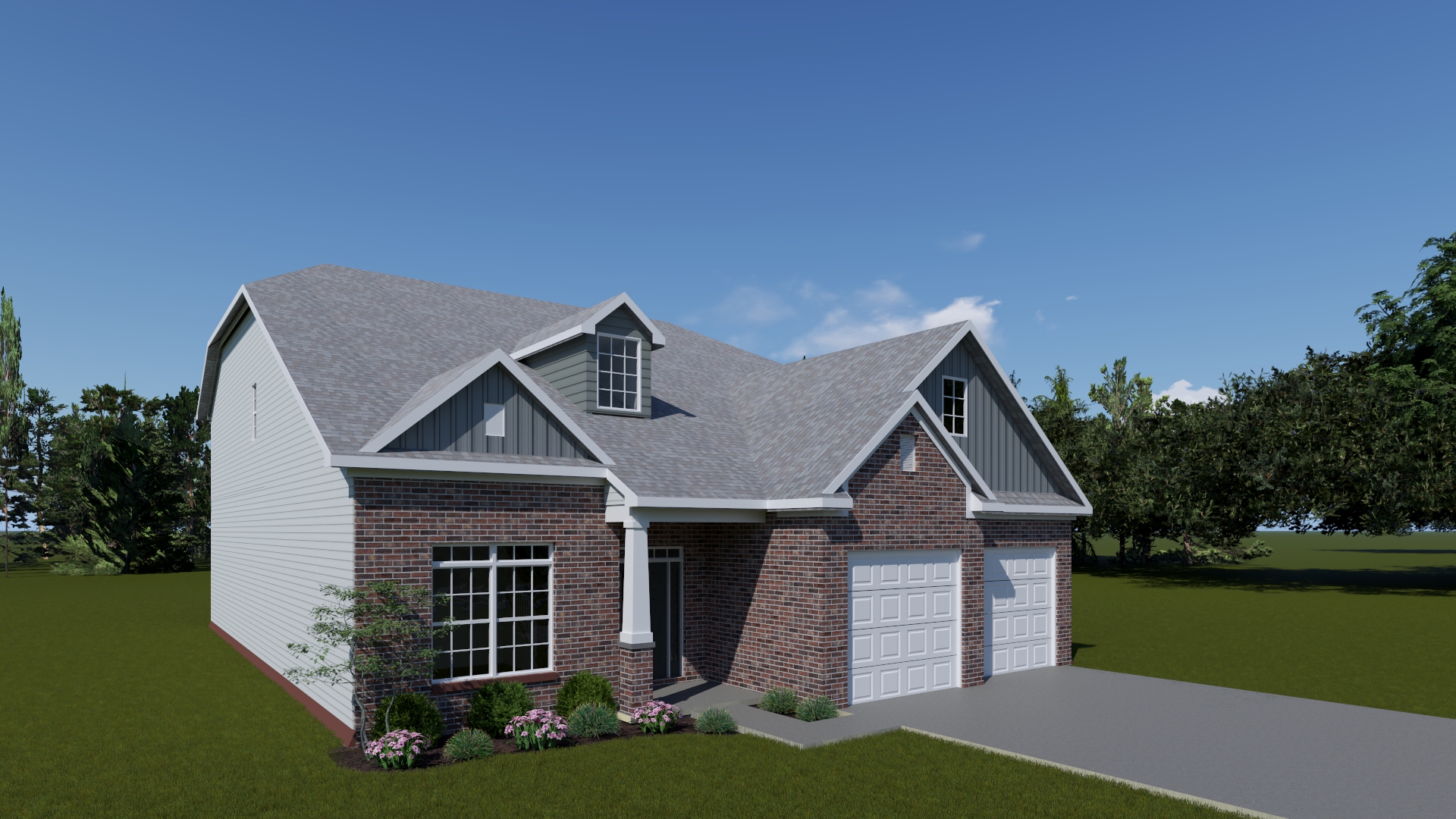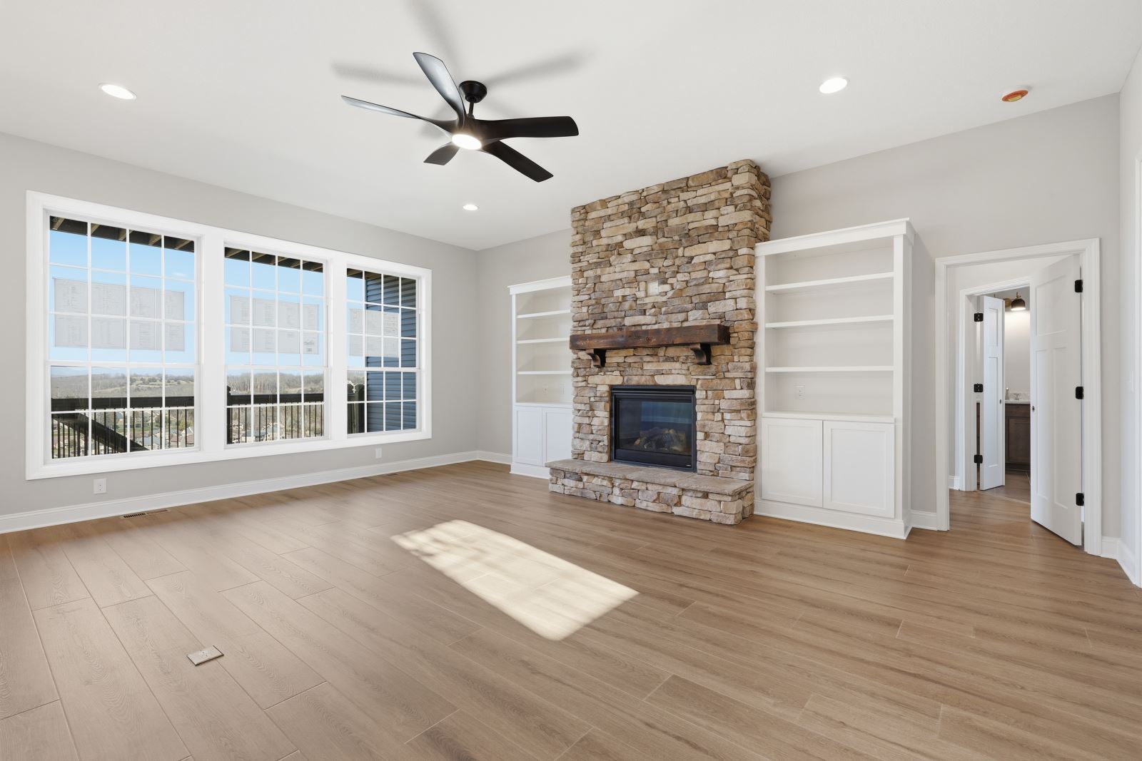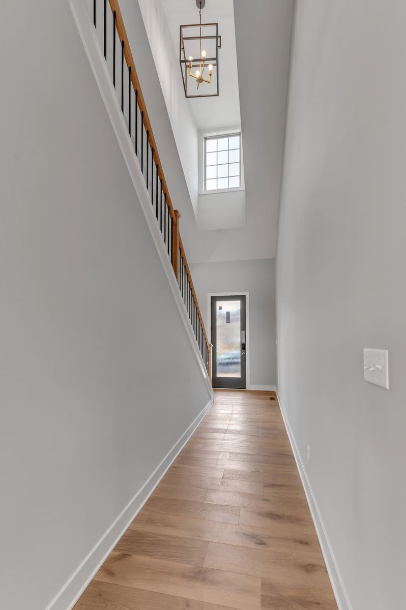The Stockton offers a very open first floor layout with a large family room and flex area off the entry than can be utilized as a formal sitting area, home office, or more.  The family room with optional bookcases and fireplace is open to the kitchen which makes this plan ideal for entertaining.  Kitchen features include an island design and separate breakfast area, and adjoins the flex room via a hallway with a built-in butler’s pantry and separate utility room with folding counter.  The first-floor primary bedroom suite includes a large walk-in closet and linen closet, a garden tub, separate shower, and 6' double bowl vanity in the primary bath.  A covered patio with covered deck above is included at the rear of the home and sheltered by the first-floor primary bedroom and breakfast area wings of the house for maximum privacy. The garage opens to a mud room, powder room, and optional drop zone off the family room.  Three additional bedrooms, two full bath and a large central loft are located upstairs, with access to the spacious covered deck.  A 10’ wide unfinished attic storage is accessible from bedroom #3.