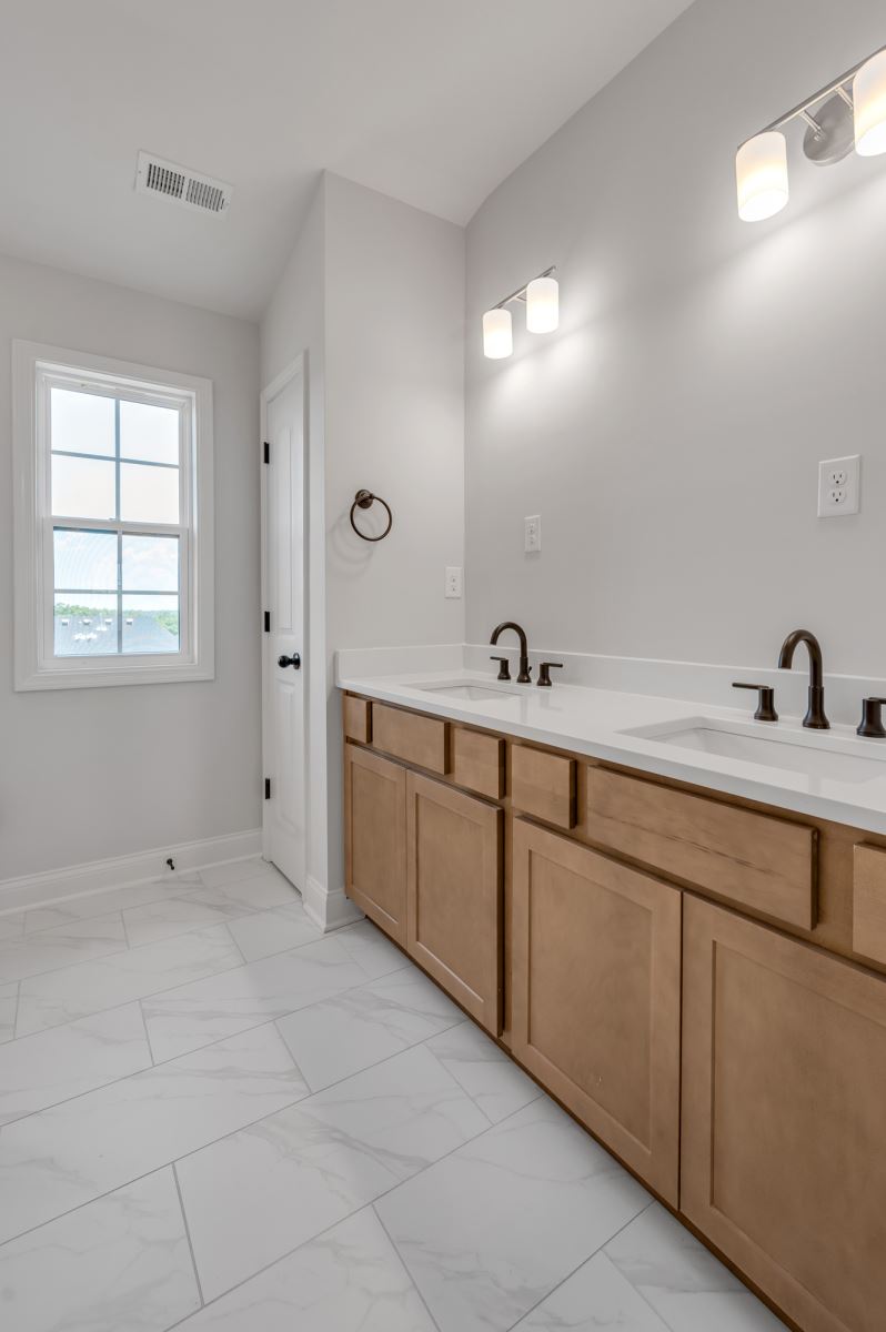 The Westchester is a traditional two-story home with a flex area off the entry and a large family room with optional fireplace opening to the island kitchen and breakfast area. A first floor guest suite is conveniently tucked away at the rear of the home and a spacious mudroom with optional drop zone connects the garage to the kitchen. A powder room and coat closet are located off the main entry hall. Upstairs, there are three large bedrooms surrounding the open loft area, and a centrally located utility room with folding counter. The upstairs primary suite boasts vaulted ceilings, a luxurious bath with double bowl vanity, walk-in shower, separate garden tub, and spacious walk-in closet. Additional bath options are available.