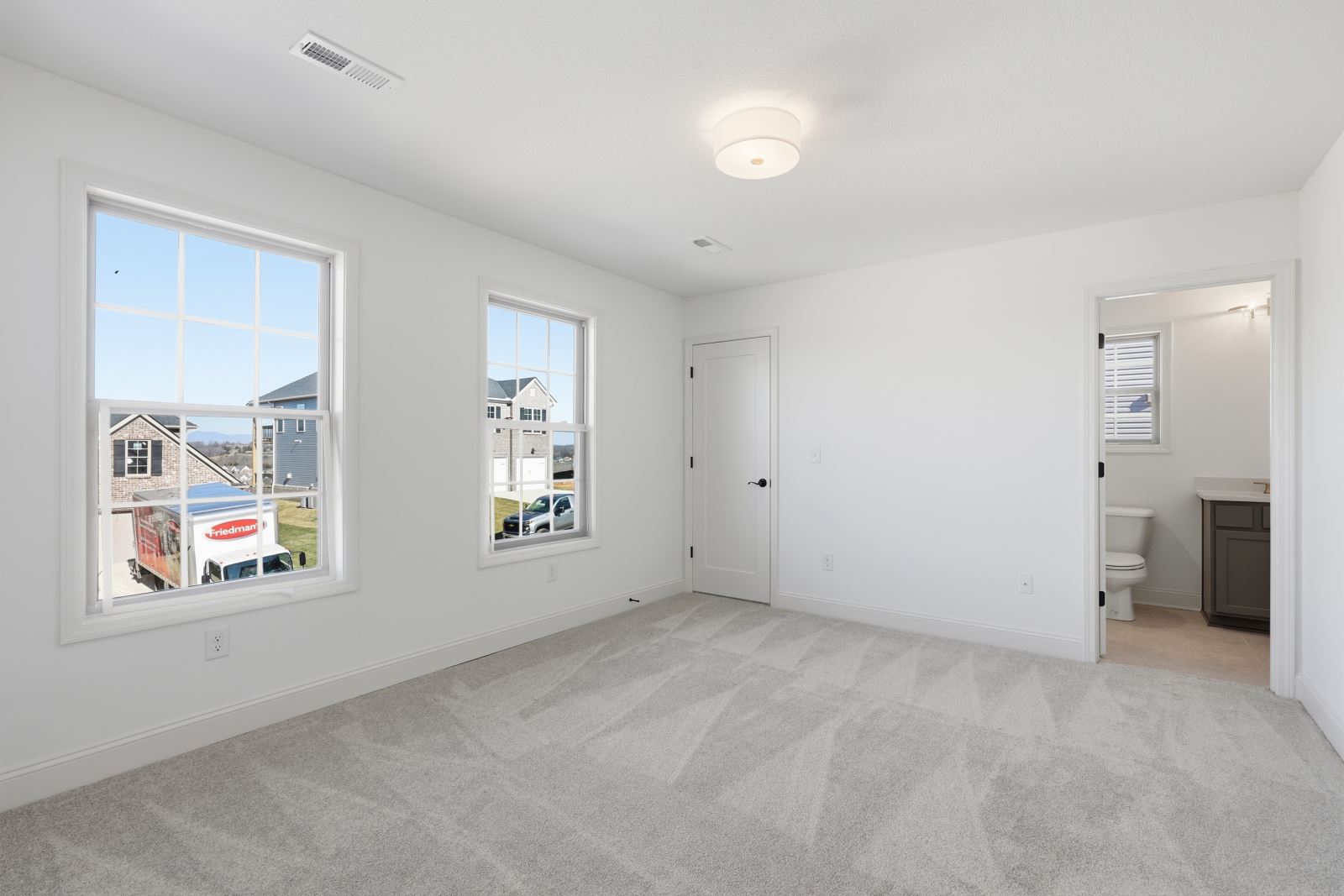 The Wheeler III is a spacious home with six bedrooms and four full baths possible.  The first floor study can be configured as a guest bedroom option.  The living areas on the first floor follow an open concept design, and include a versatile flex area.  An island kitchen and spacious breakfast area adjoin a large family room with optional fireplace, all overlooking the rear yard. A drop zone option is available at the entry from the garage for additional organization. The large upstairs primary bedroom can be divided to create a separate sitting area.  A luxurious bath with double bowl vanity, separate shower, and garden tub, plus a spacious closet, complete the primary suite.  Three additional bedrooms and a loft are included, with an option for a fifth bedroom in lieu of the loft.  Bedroom #4 has its own private bath and a walk-in closet.  The utility room is located upstairs for convenience and includes a folding counter.  Additional features include a covered front porch and hip roof design.